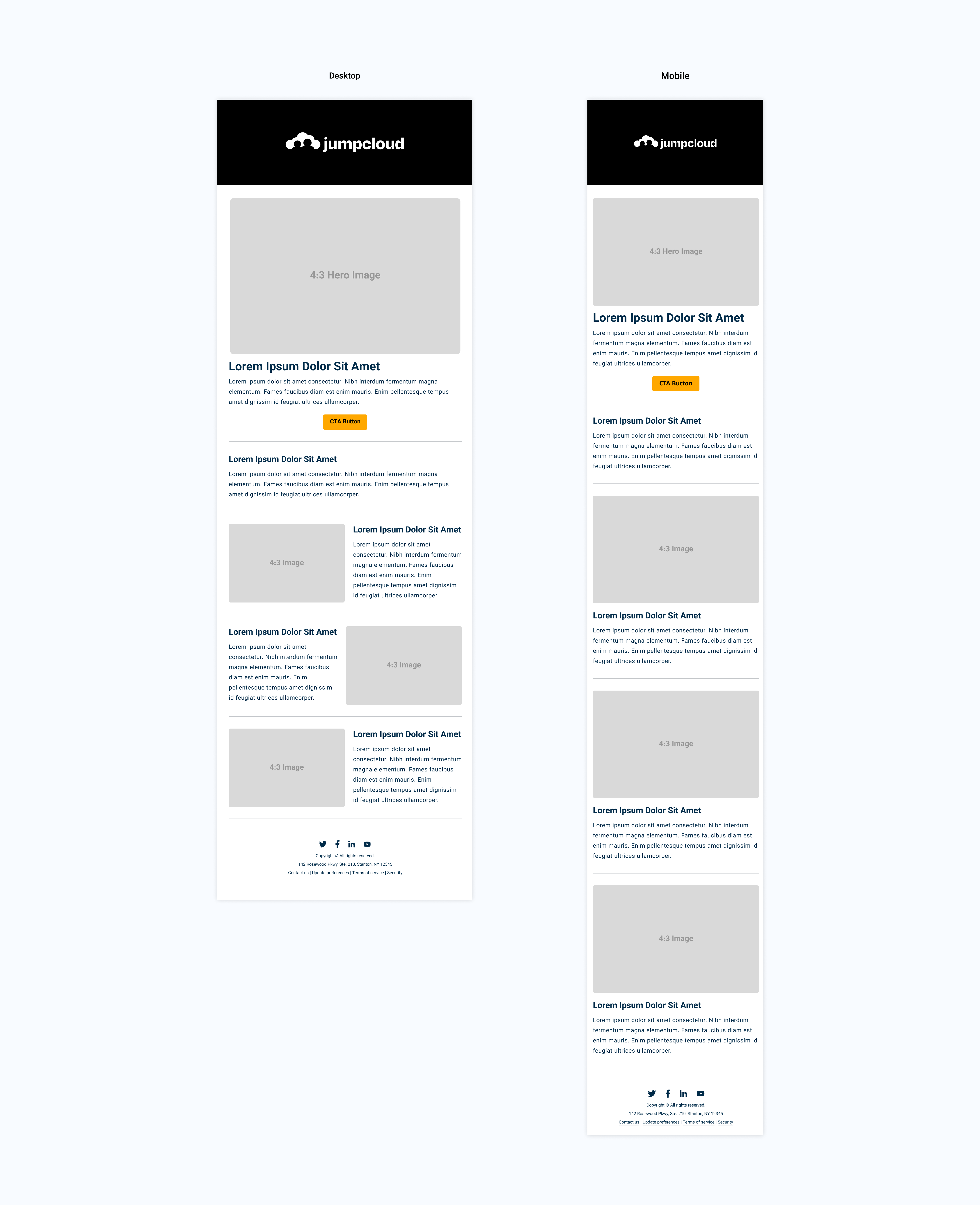 The updated brand system elevated JumpCloud’s visual identity and supported the company’s growth into a more mature and competitive presence. The scalable design assets and web templates enabled faster, more consistent production of marketing and product materials across departments.